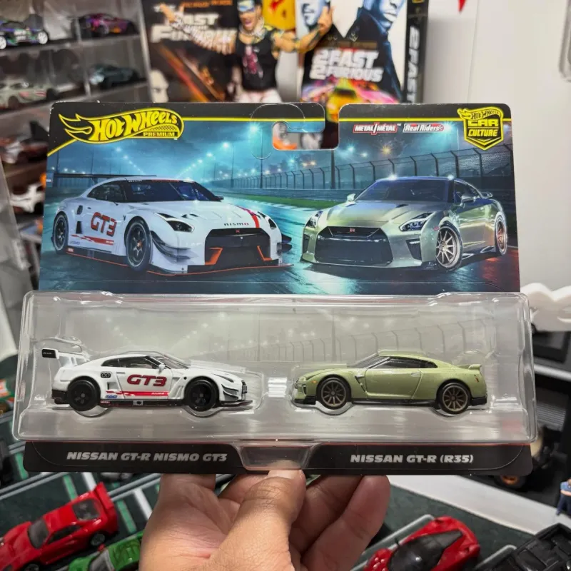 Hot Wheels Premium Car Culture 2-Pack delivers TWO iconic GT-Rs in one premium set - the race-bred NISMO GT3 and the legendary road-going R35 in stunning Millennium Jade! 💎 Featuring Metal/Metal construction, Real Riders rubber tires, and authentic details! Perfect for GT-R collectors, Nissan enthusiasts, and Hot Wheels Premium fans! 💪